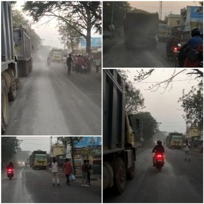 एनटीपीसी से एनएच में राखड़ की सप्लाई:- वाहनों से उड़ती जहरीली राख से परेशान है लोग …होली के बाद बड़े आंदोलन की तैयारी में ग्रामीण..?