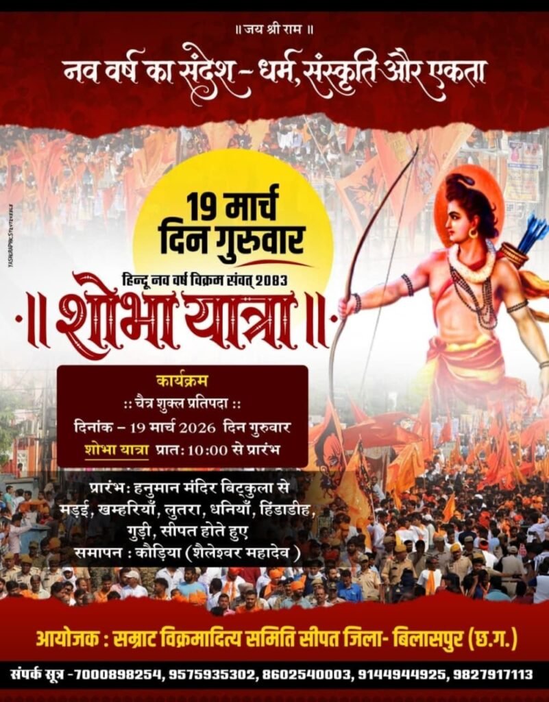 हिंदू नव वर्ष पर सीपत क्षेत्र में बिटकुला से निकलेगी भव्य शोभायात्रा, कौड़ियां में महाआरती के साथ होगा समापन…@